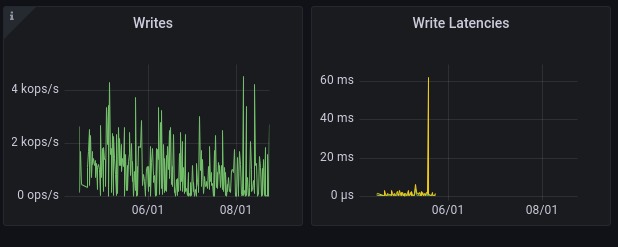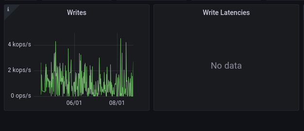 If you open the Overview dashboard and look at your entire retention time (in our example 1 year) you will see that while most of the graphs do show the data, the latency graphs have a missing period, in our example - from the entire year, the latency graph will only show the last three months.